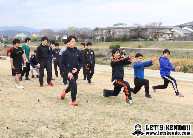 三人組になり基本打ちを30分行い、打ち込み・掛かり稽古。掛かり稽古ではコーチ陣も元にたち、部員たちの限界を引きだす。休憩後には技練習へ。各自の課題を繰り返し、コーチ陣も積極的に声を掛けかける。その後、地稽古へ。