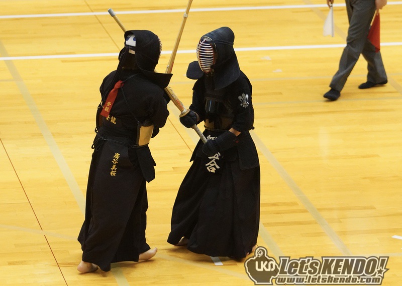 有効打の奪い合いとなった先鋒、次鋒戦は引き分けとなり、副将戦で日章・船迫が引きメンを決めて一本勝ち。大将戦、育英・谷川が手数を増やすが日章・荒木も出ばなを狙うなど接戦となり引き分け。日章が1-0で勝利した。
