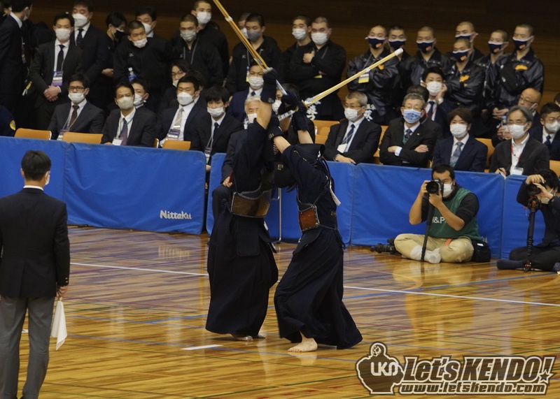今大会最初の一本は、女子で札幌日大先鋒・宮内がメンを決めたが、試合は前回王者・八代白百合が2-1で逆転勝利。男子は佐久長聖先鋒・林がメンを2本決めチームも浪速から2-1で勝利