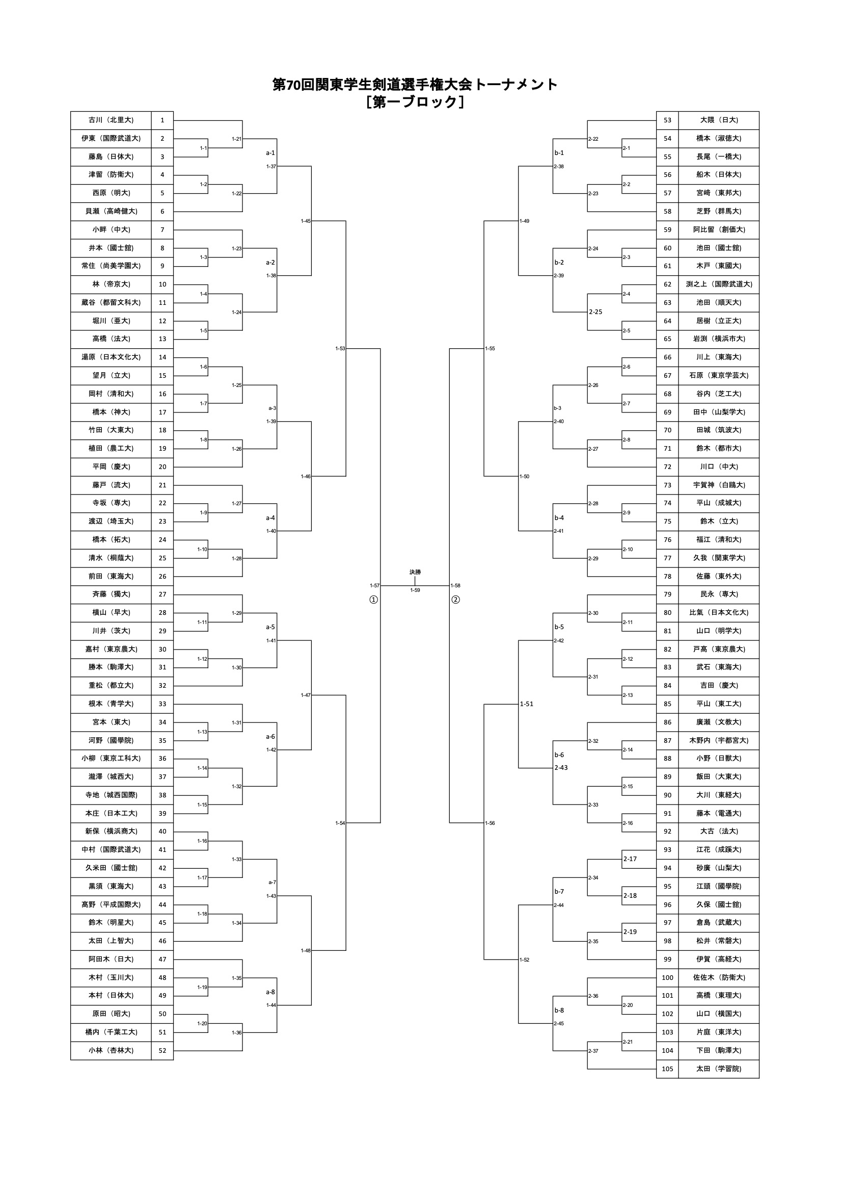 【早稲田】横山、斎藤【大東文化大】飯田、鈴木【駒澤大】下田、坂本【東洋大】横井、馬場【国際武道大】日裏、遠藤【明治大】三宅、中村【東京農大】生田、駒井【 慶應義塾】平岡、野口