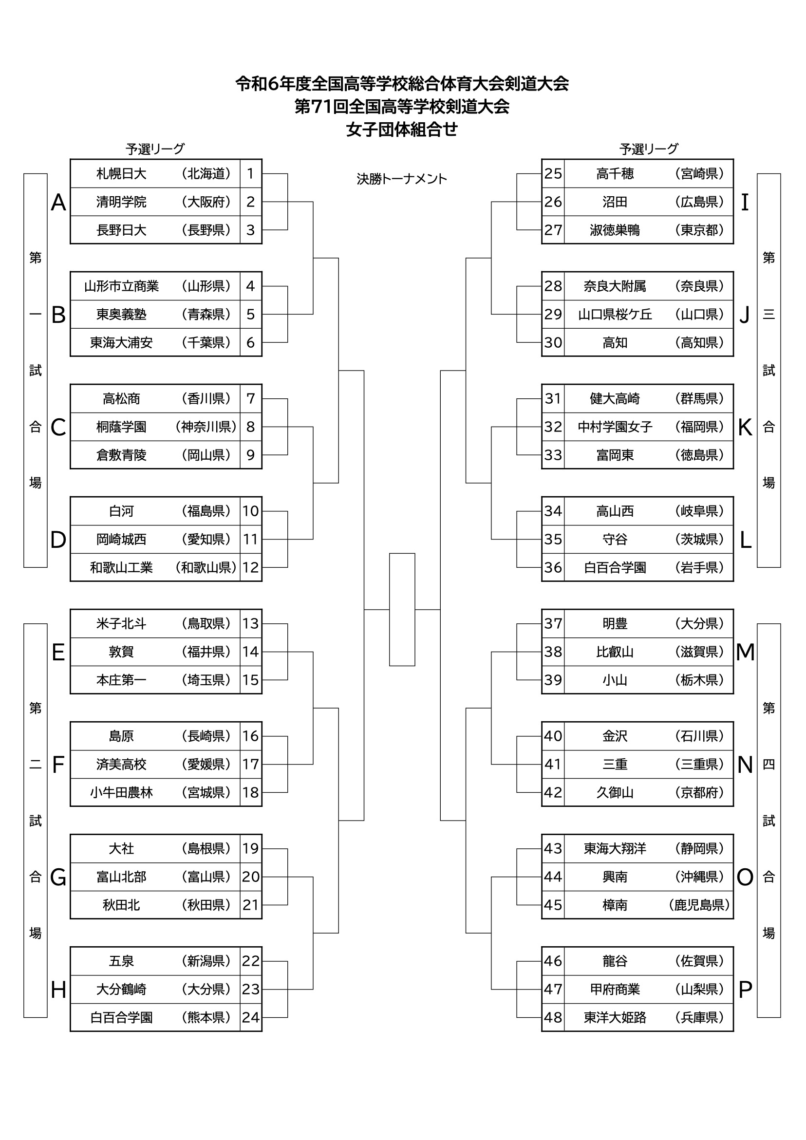 予選リーグ1位&決勝トーナメント組合せ