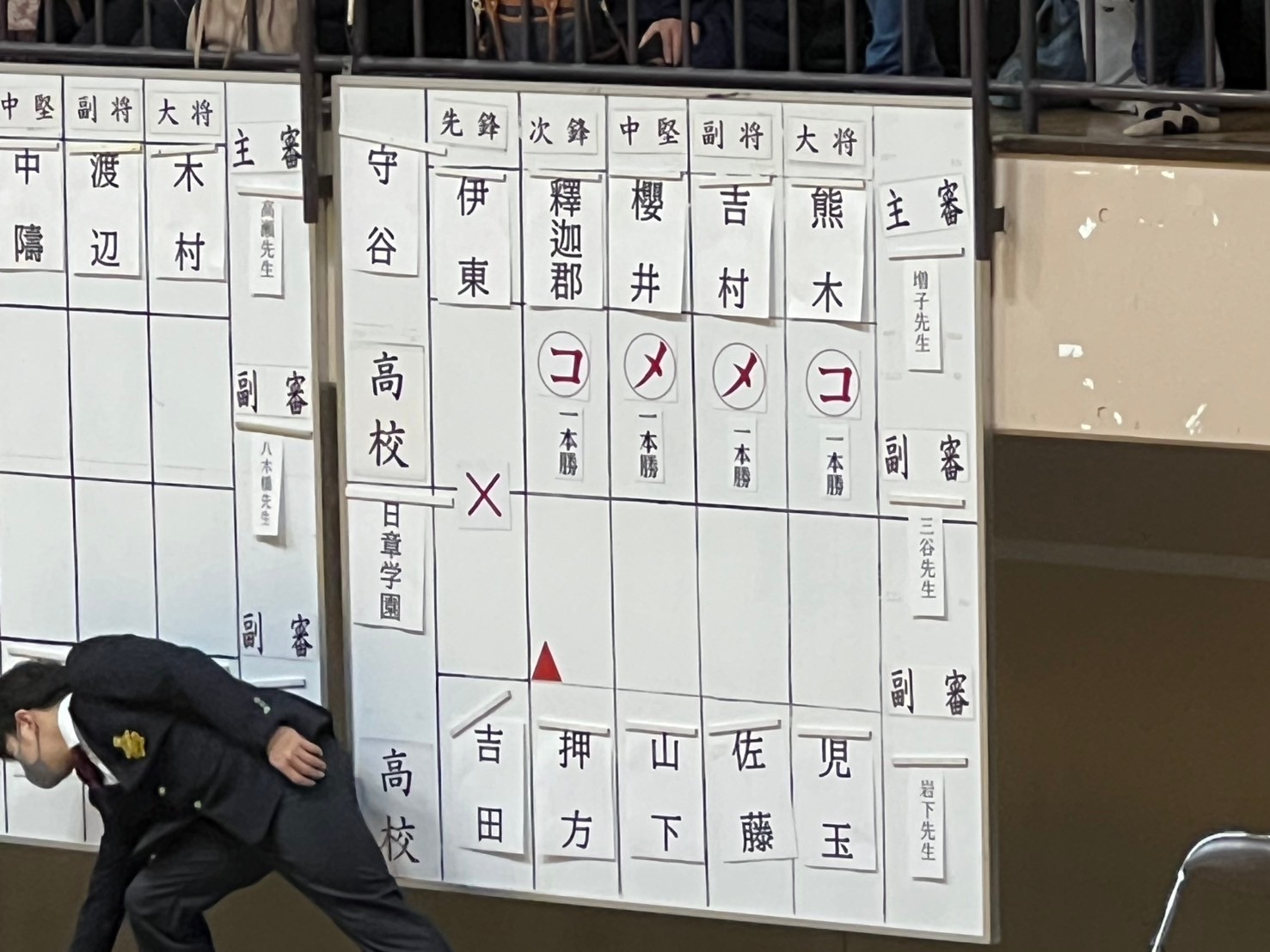 男子決勝は、高千穂(宮崎)と郁文館(東京)が対戦し、高千穂リードの大将戦で郁文館・久保木が勝利し、さらに代表戦でも久保木が引きドウを決めて初優勝を果たし、郁文館の北口監督は国際武道大学出身であり、同校出身監督の優勝も初めてとなった。
