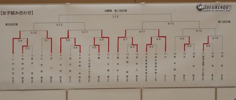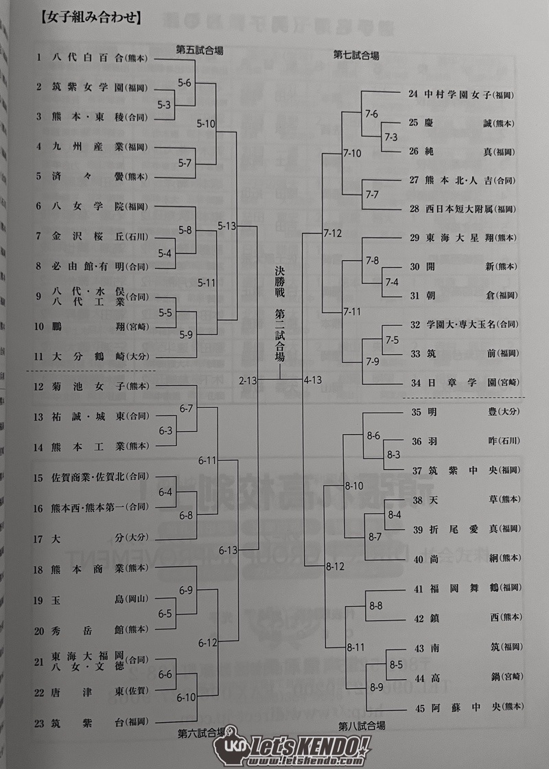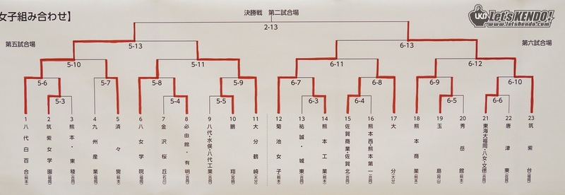 女子決勝は名門対決、前回優勝の八代白百合と中村学園女子が対戦。試合は大将戦となり最後は中村・牛嶋が引きメンを決めて1時間に及ぶ試合を制した。