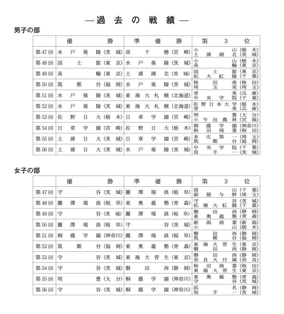 参加チームは男子126チーム、女子109チームがエントリー予定。男子は前回大会優勝の土浦日大(茨城)、ベスト4の水戸葵陵、取手第一、中央学院がエントリーし、磐田西、佐野日大、東海大浦安、桐蔭学園、郁文館などが参加予定。女子も前回優勝の守谷、桐蔭学園、浜名の前回上位チームの他、本庄第一、五泉、健大高崎、草津東など強豪校もエントリーしている。さらに北海道から東海大札幌が男女とも出場予定。LET’S KENDOではライブ配信予定