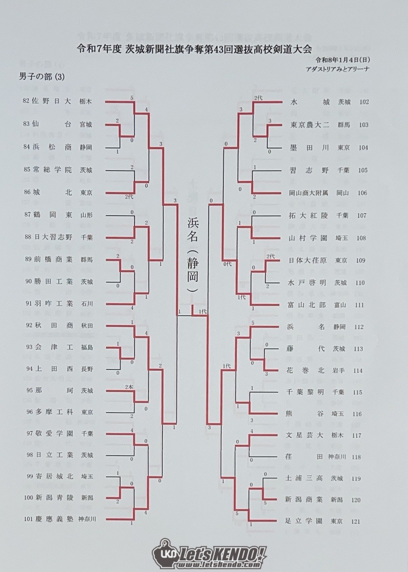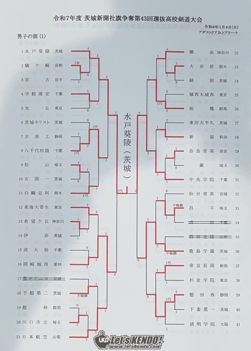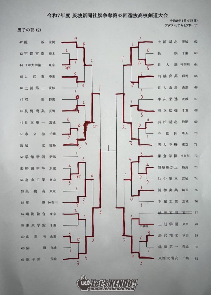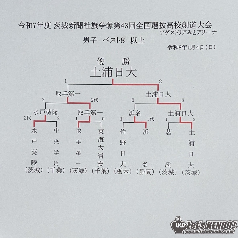 茨城新聞社旗争奪第43回全国選抜高校剣道大会が2026年1月4日(日)〜5日(月)、茨城県水戸市・アダストリアみとアリーナにて開催された。