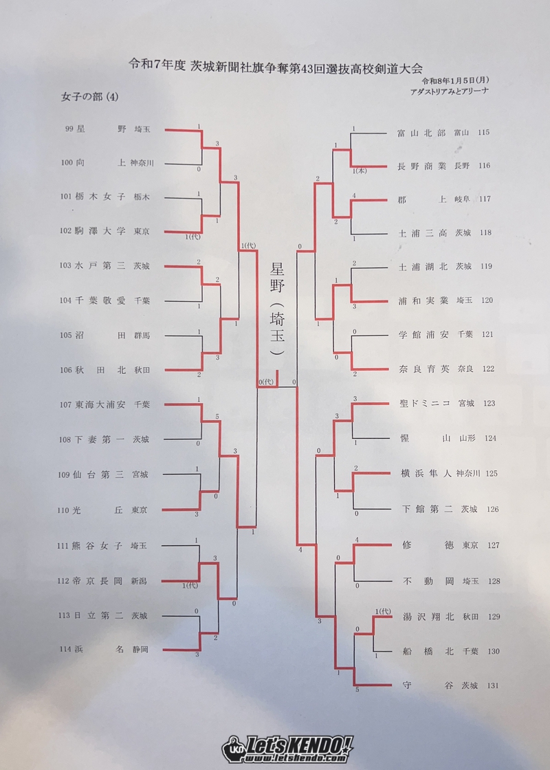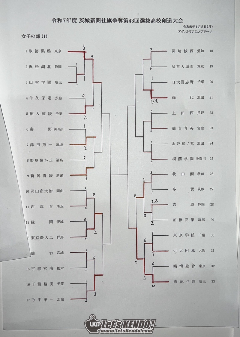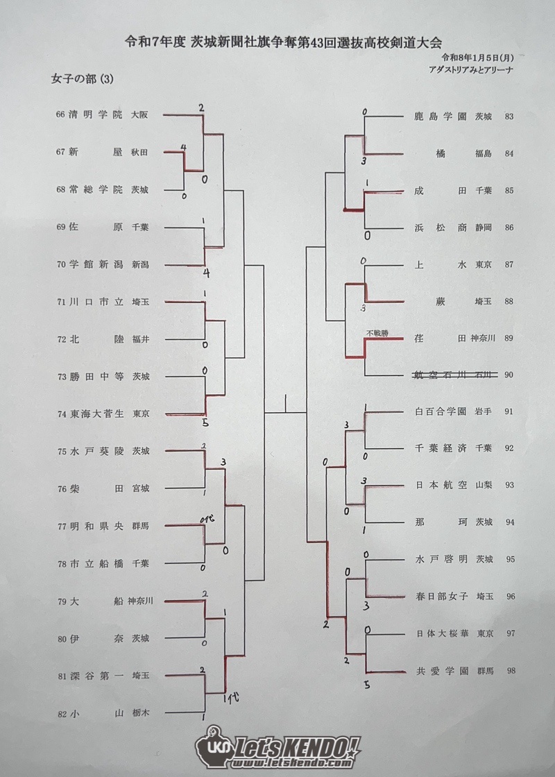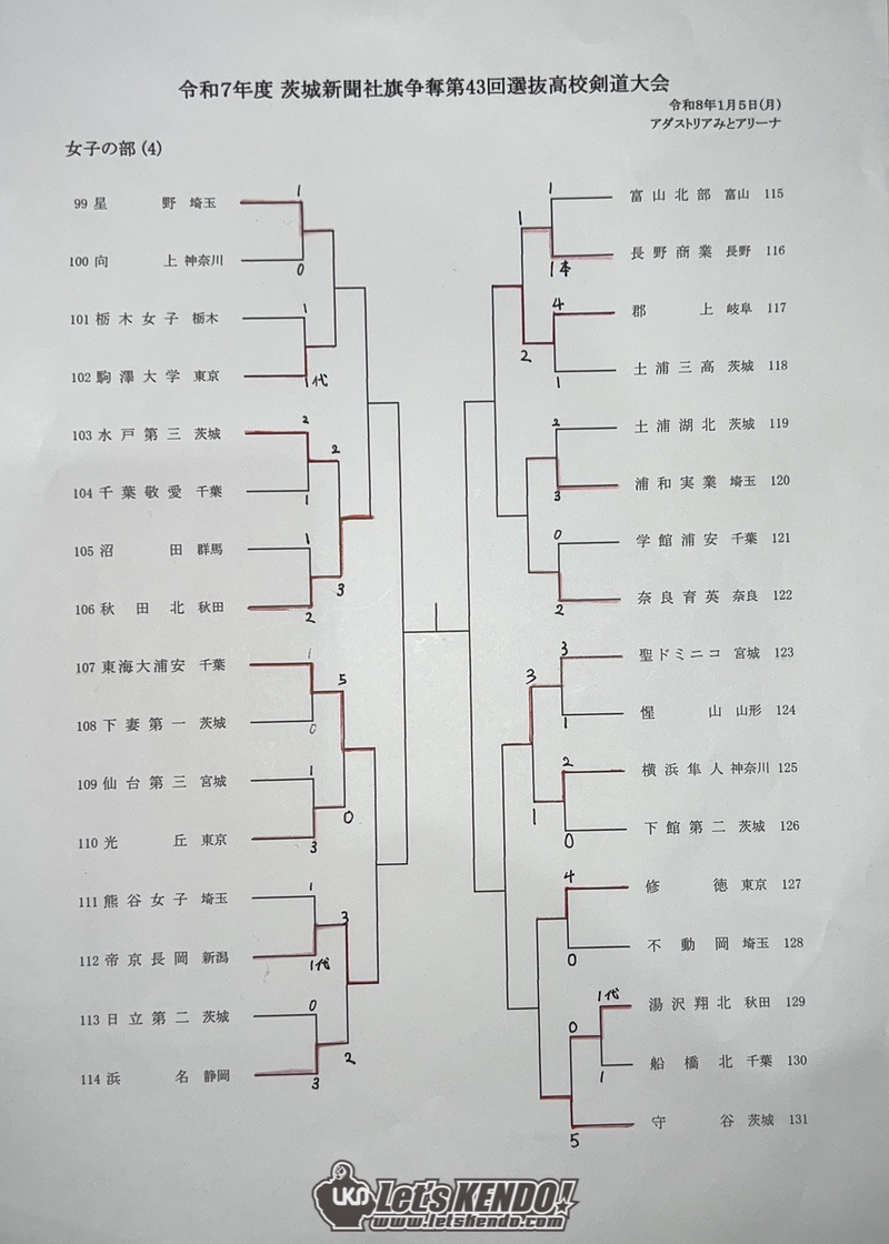 茨城新聞社旗争奪第43回全国選抜高校剣道大会が2026年1月4日(日)〜5日(月)、茨城県水戸市・アダストリアみとアリーナにて開催された。