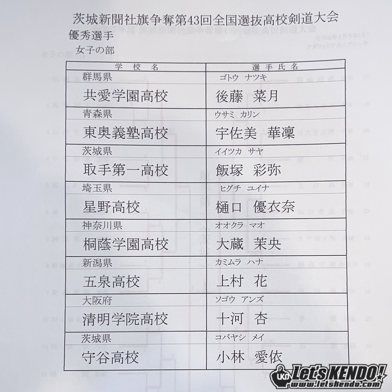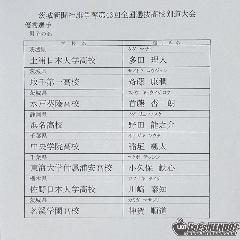男子は大会連覇中の水戸葵陵、関東からは東海大浦安、佐野日大、土浦日大などの強豪校がエントリーしている。女子は前回大会の淑徳巣鴨、守谷、東奥義塾、星野、桐蔭学園など各地から強豪が集結。男女ともや大阪・清明学院、佐賀・龍谷も出場予定。LET’S KENDOでは速報、ライブ配信予定!