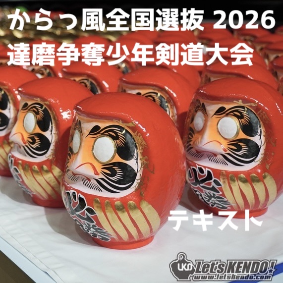 第15回からっ風全国選抜達磨争奪少年剣道大会が2026年1月10日(土)群馬県太田市・OPEN HOUSE ARENE OTAにて開催される。試合は低学年個人戦が2部門、団体戦は小学生、中学生男女の合計3部門。参加チームは北海道から鹿児島まで全国から集結。小学生の部は例年100チーム以上が参加し、中学生の部では強豪校が多数参加。中学生男子団体では前回優勝の上の台、全国道連優勝の東松舘、全中二位の郁文館、洗心道場、印南剣道場、潮田中、砂山少剣などがエントリーしている。そして、開会式後には大会の目玉企画である今年度の大会で優秀な成績や活躍した選手を選抜した紅白戦、小学生の部、中学生の部がおこなわる。