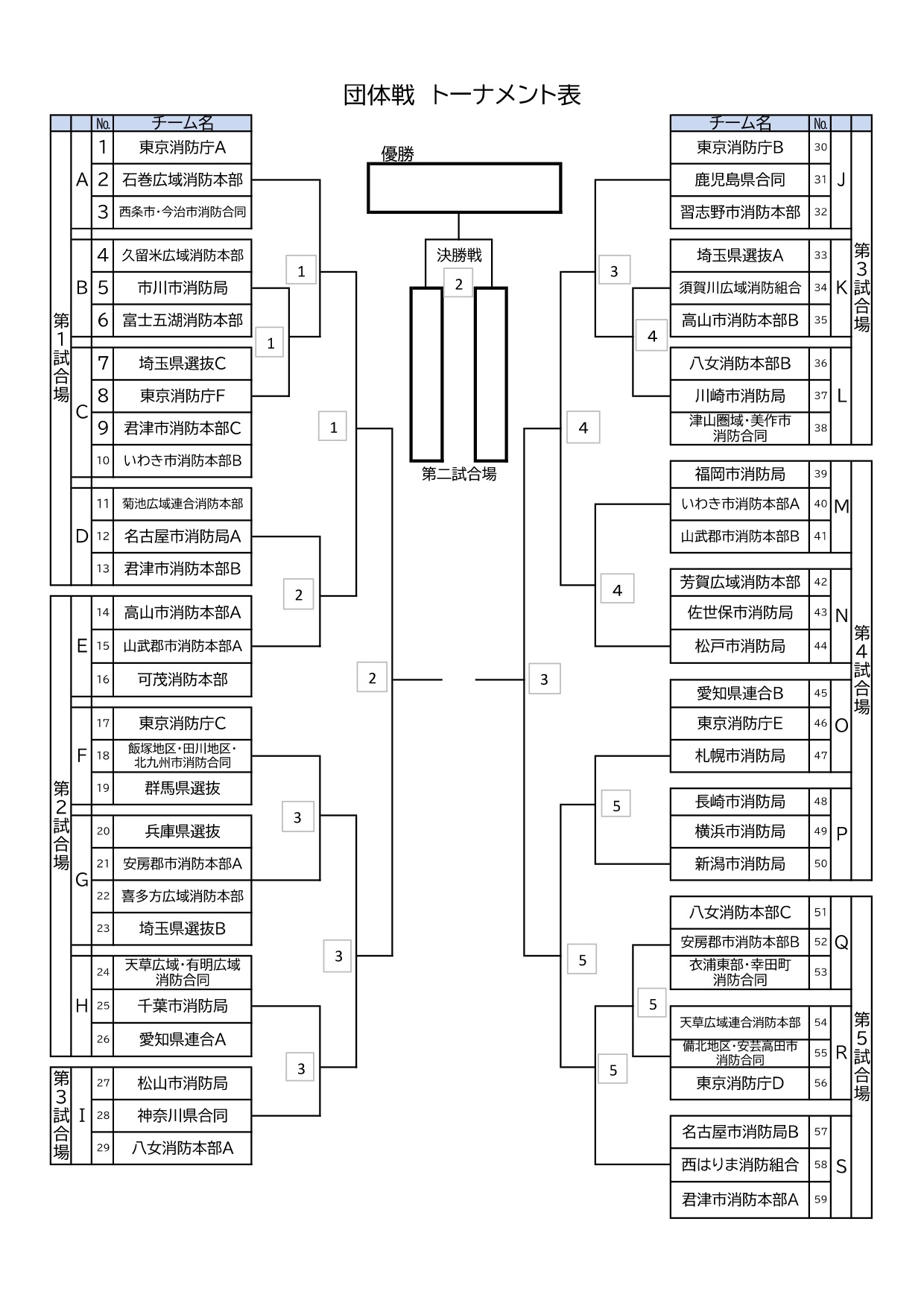 ・五人制団体戦:予選リーグ+決勝トーナメント