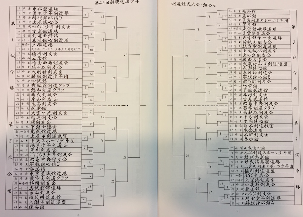 四誠館(埼玉)、練兵館(栃木)、雄邦館(東松舘B・東京)、解脱練心館A(埼玉)